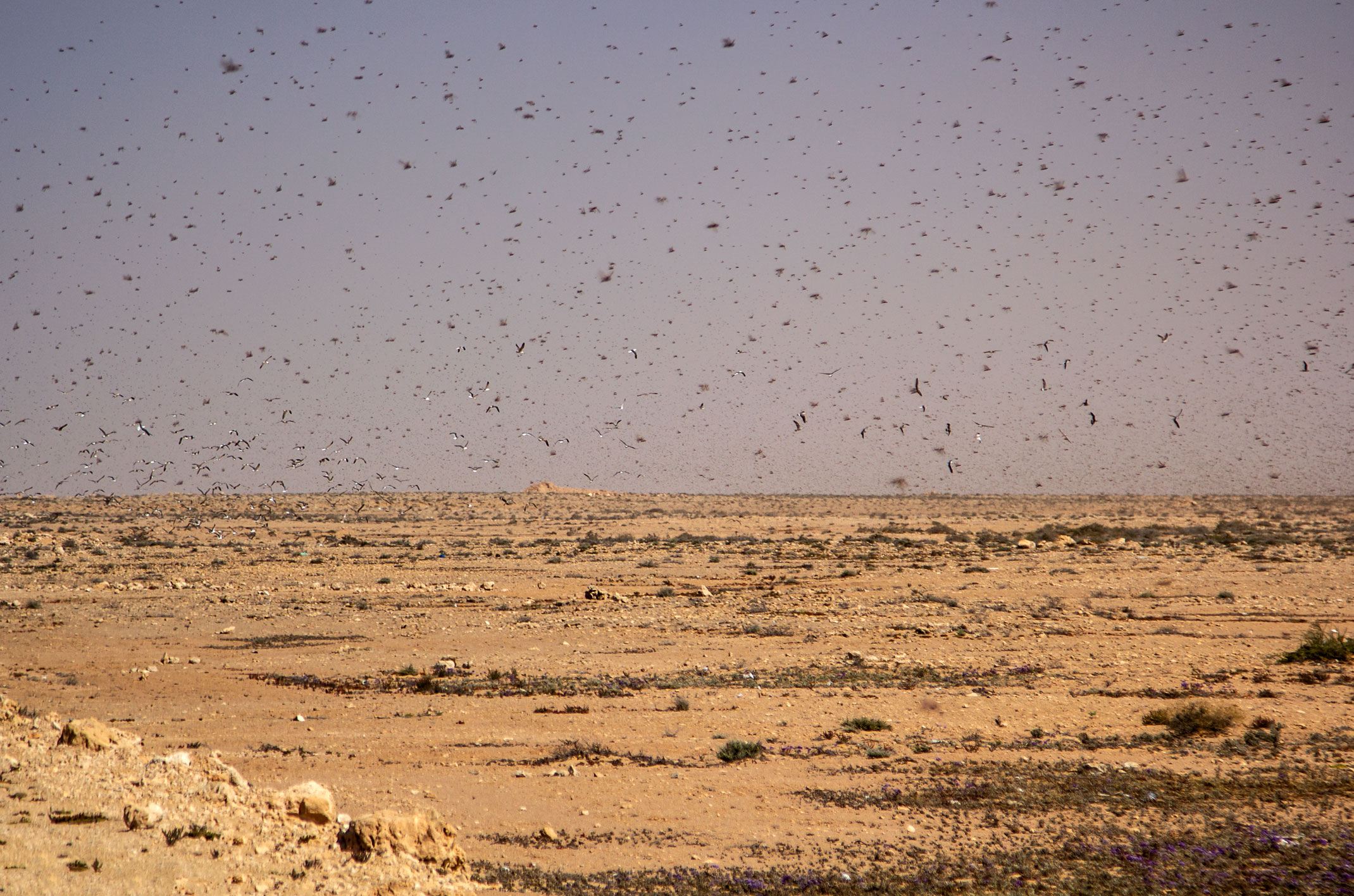 Robimy zawrotkę i znów gnamy na północ,zaliczając po drodze roje szarańczy pustynnej,